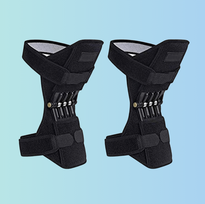 Knee support braces with spring technology designed to reduce pressure on your knees, ease discomfort, and help you walk, climb stairs, and move with greater comfort.